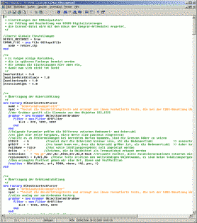 Der Auswerteprozess wird über Skriptdateien gesteuert. Diese können mit einem einfachen Texteditor erstellt werden. Es sollte nach Möglichkeit ein Editor mit Syntax-Highlighting verwendet werden, damit Kommentare und Code farblich unterschieden werden können.