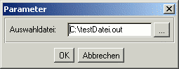 Fragt einen Dateinamen (StringValue) ab. Der Anwender kann diesen über das Textfeld eingeben oder über das Auswahlbutton aus dem Filesystem auswählen.