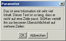 Stellt einen Informationstext in dem Abfragedialog zur Verfügung. Lange Texte werden zur besseren Übersichtlichkeit auf mehrere Zeilen verteilt.